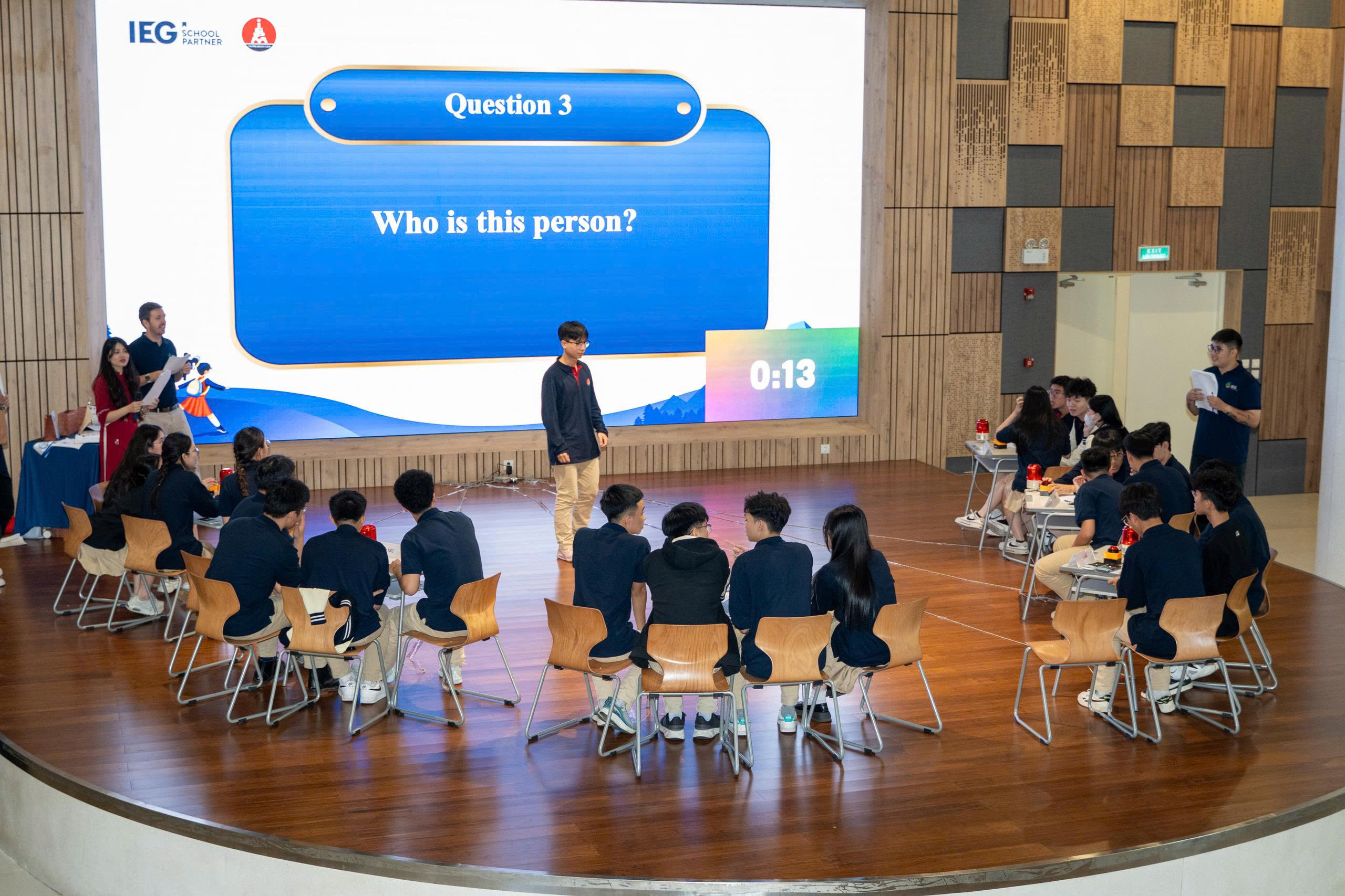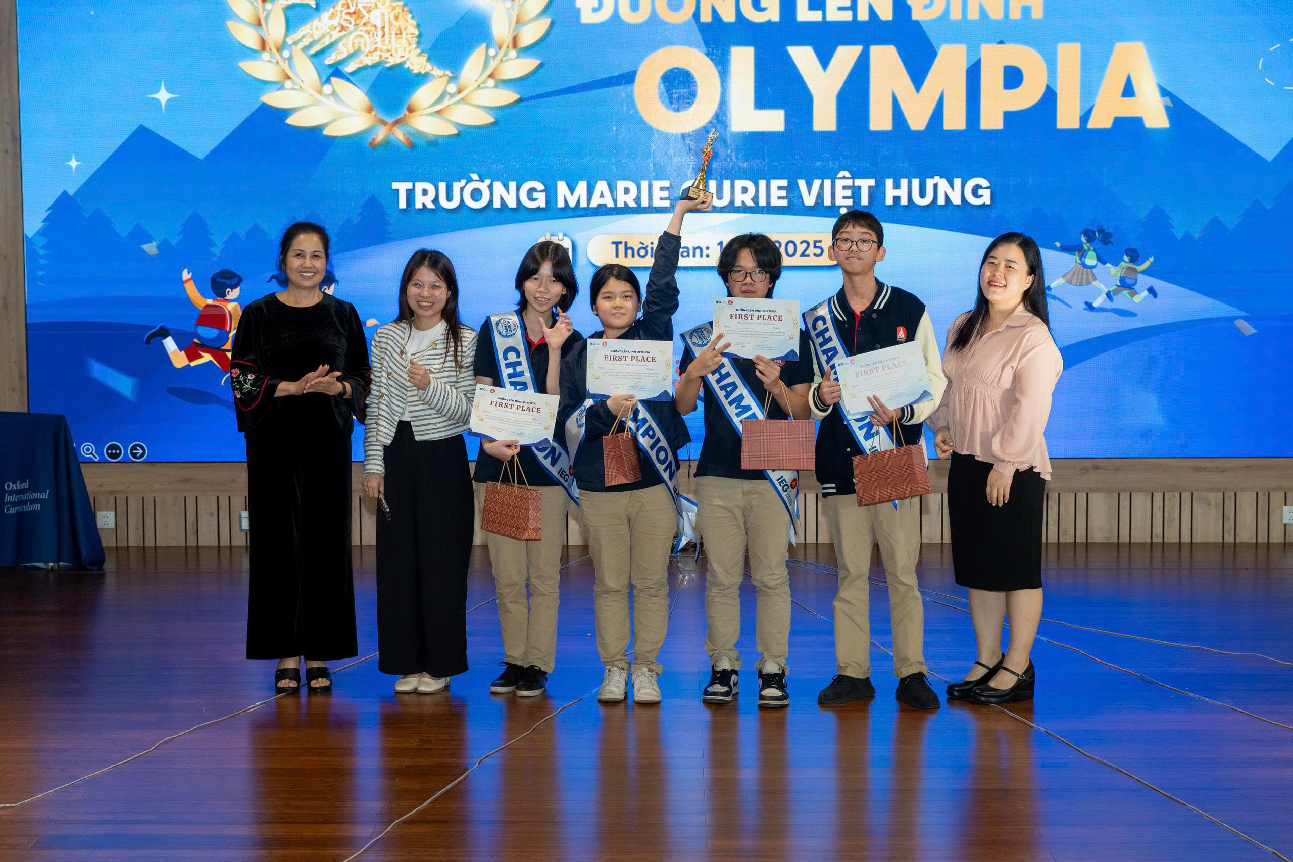 Các MCer lớp Tiếng Anh chuẩn quốc tế khối THPT - Việt Hưng đã phát huy khả năng tiếng Anh và trổ tài kiến thức ở nhiều lĩnh vực trong cuộc thi “Đường lên đỉnh Olympia”.