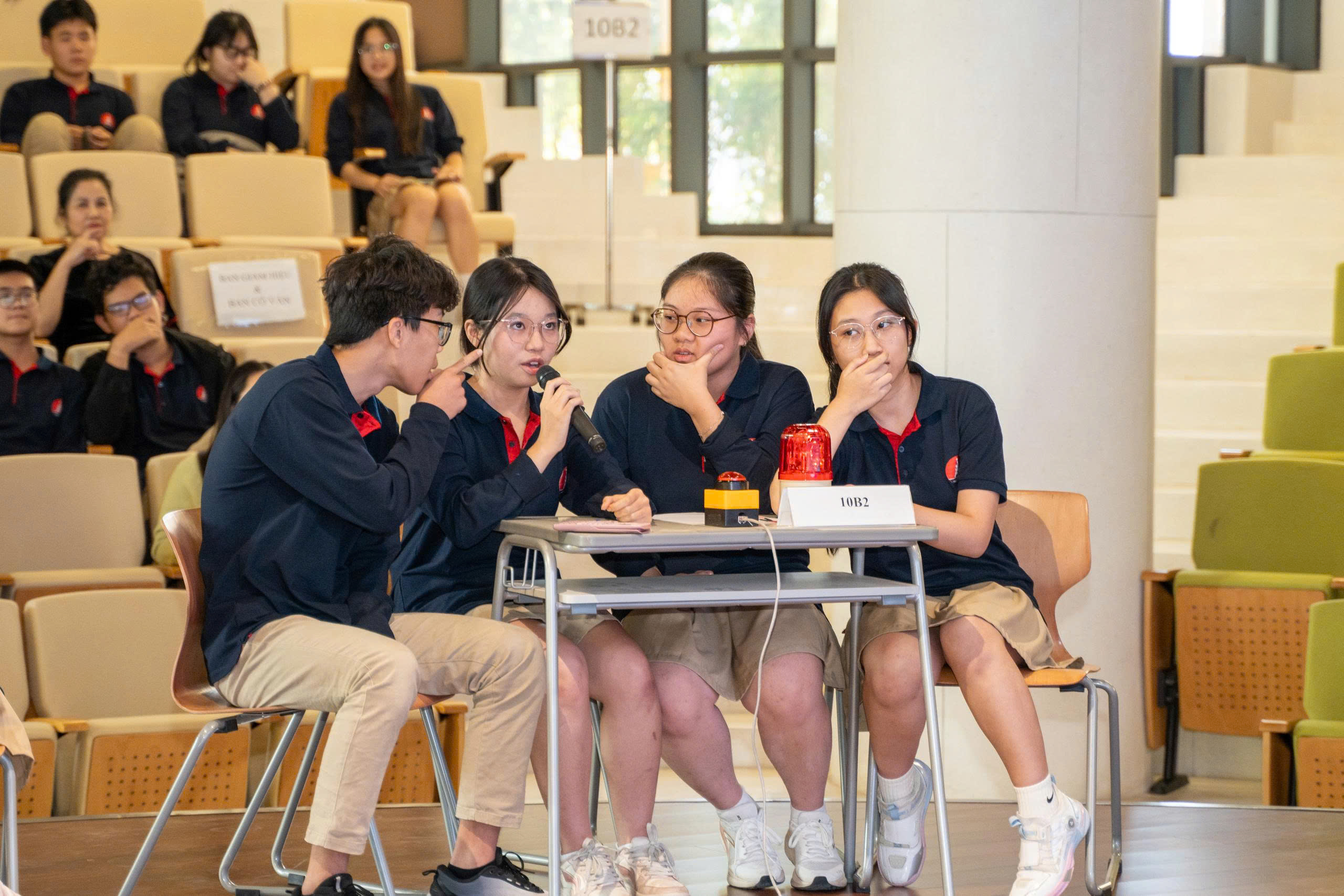 Tự hào, xúc động khi chứng kiến các học trò đoạt giải Nhất, cô Kim Anh (GVCN 10B1) chia sẻ: “Tuy ban đầu chưa giành được nhiều lợi thế về điểm số nhưng sau đó, các con đã thể hiện phong thái chững chạc, điềm tĩnh, quyết tâm để trở thành nhà Vô địch của cuộc thi. Sân chơi này giúp các con hiểu rằng, tri thức là quan trọng nhưng bản lĩnh, sự gắn kết mới là yếu tố tạo nên sức mạnh thật sự.