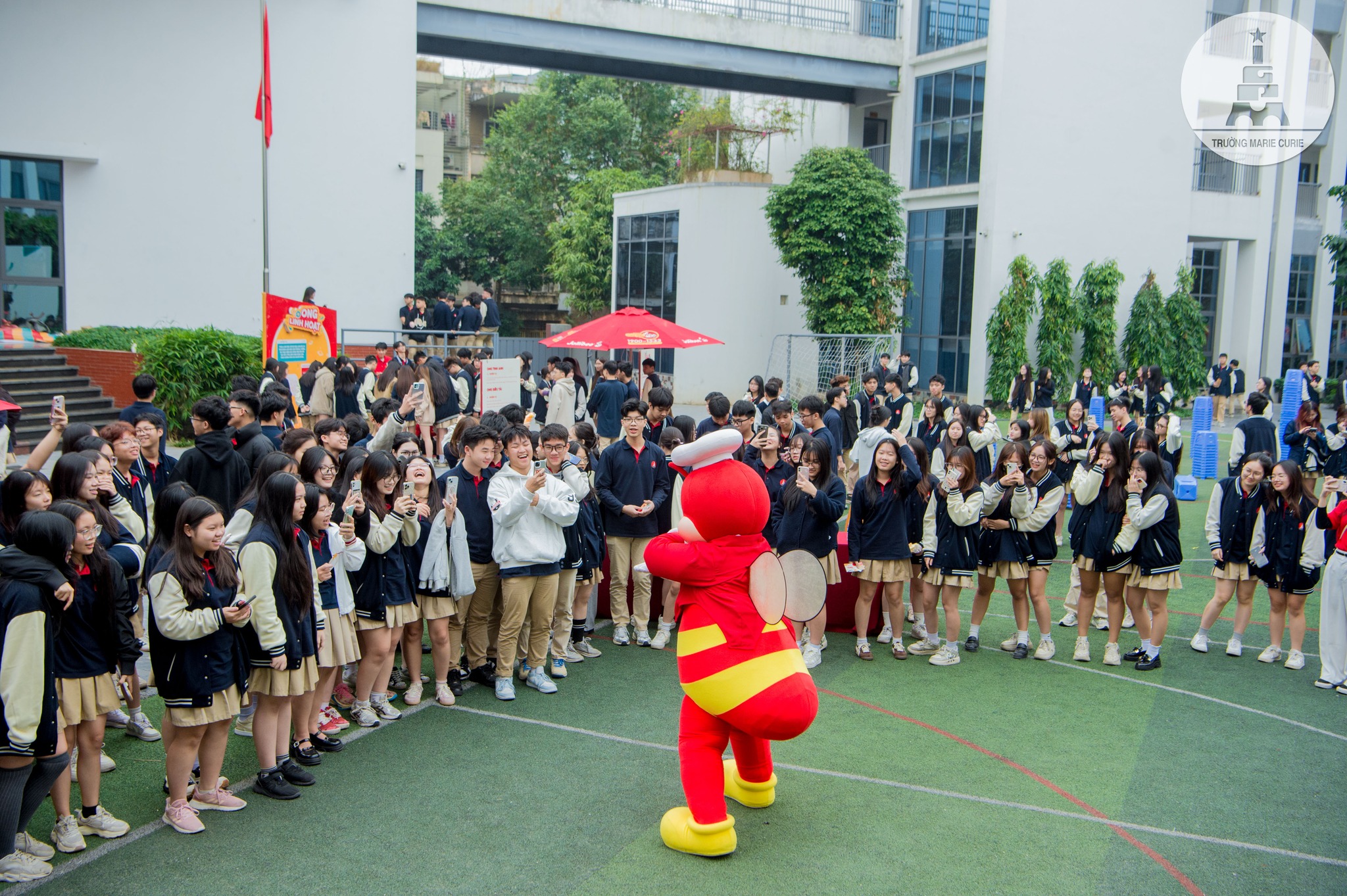Những điệu nhảy sôi động của chú ong Jollibee vui nhộn, phần trả lời câu hỏi “Nghề nào hợp vibe - test phát biết ngay” đã làm khuấy động sân trường, khiến các MCer càng thêm hứng thú.