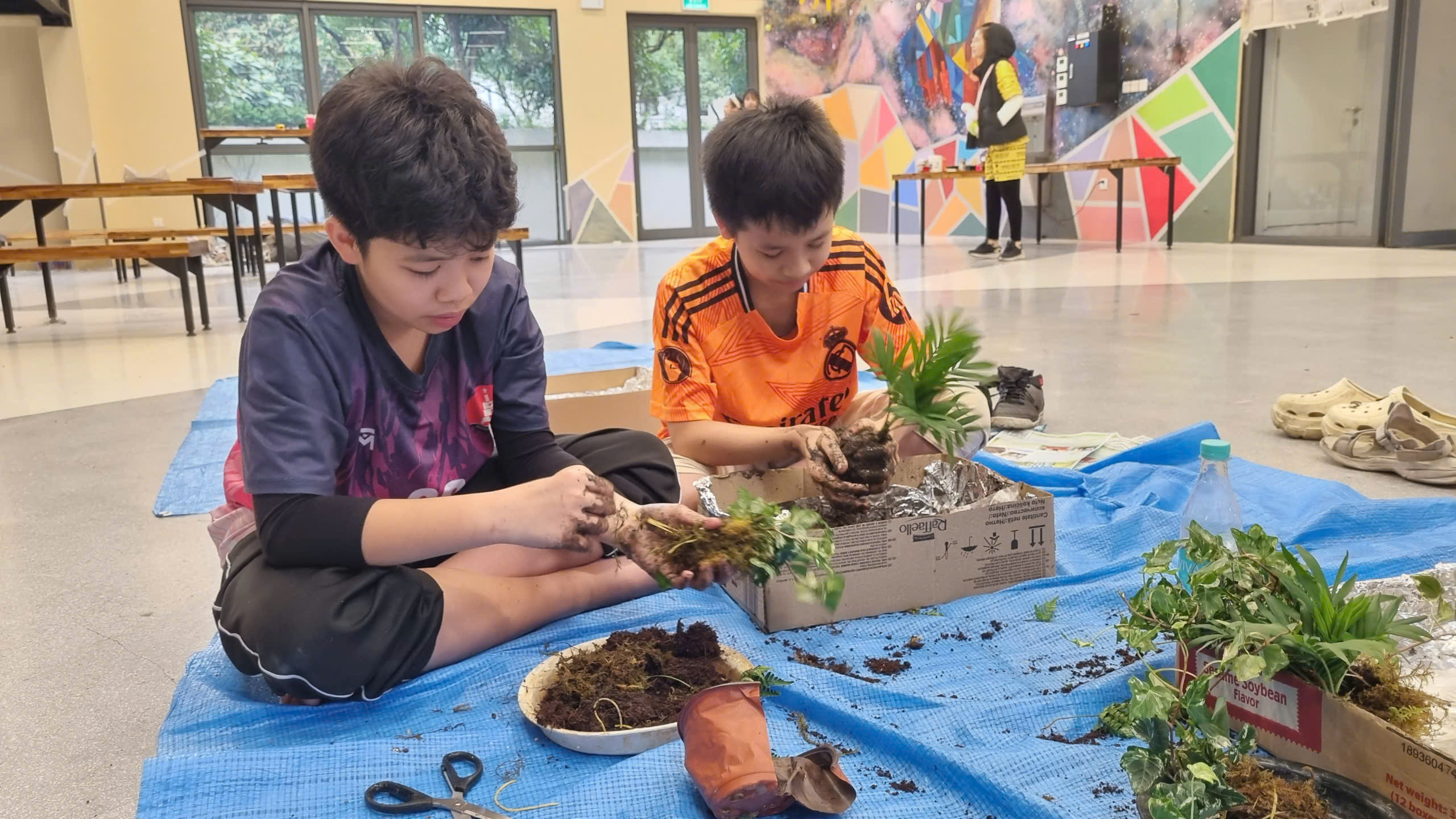 Các MCer nhí rất hào hứng, thích thú tìm hiểu cách trồng cây độc lạ. Theo các bạn, phần khó nhất là lấy rêu bọc quanh quả cầu đất và quấn chỉ cố định bởi phải làm thật khéo để không lỏng lẻo hay rơi rụng, giúp cây khỏe mạnh sau khi trồng. Không chỉ tự tay làm những sản phẩm đẹp và độc đáo, các bạn còn được gặp nhau giữa không gian xanh, cùng “chạm” vào thiên nhiên, cũng như truyền tải thông điệp: mang không gian xanh đến ngôi nhà của mình.