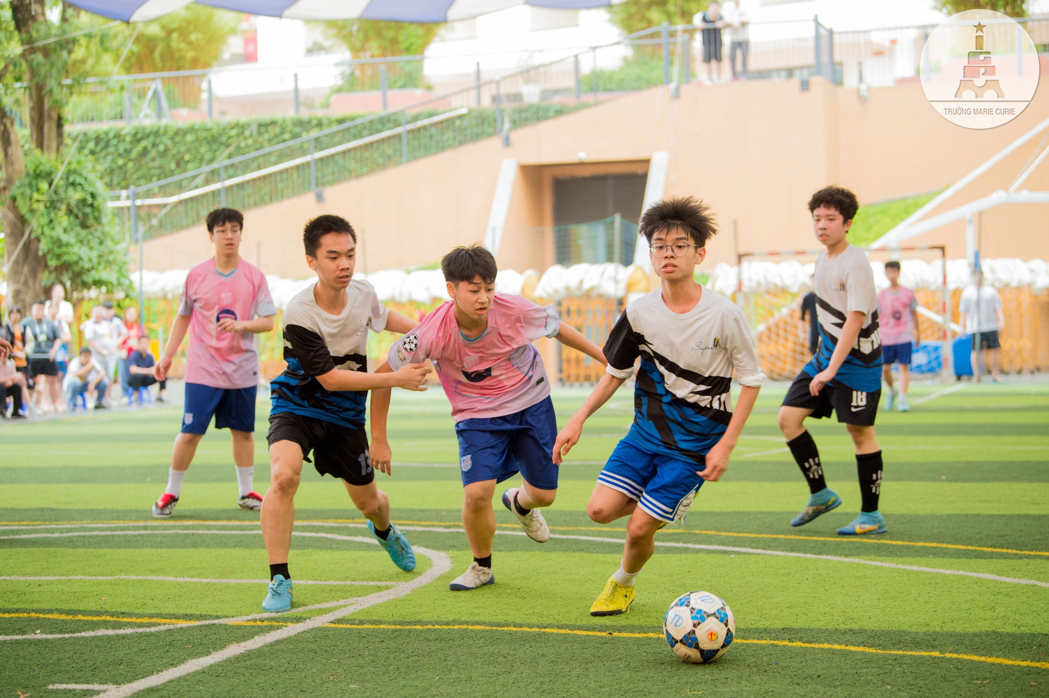 Thế nhưng, bước sang hiệp 2, đội 9G1 thi đấu bùng nổ với hàng loạt pha tấn công dồn dập. Từng bàn thắng được ghi, khiến sân trường “nóng” lên theo từng nhịp bóng. Khi cuộc tranh tài chỉ còn hơn một phút, G1 gỡ hòa 3 - 3 trong tiếng reo hò vang dội khắp sân, đẩy không khí trận đấu lên cao trào.