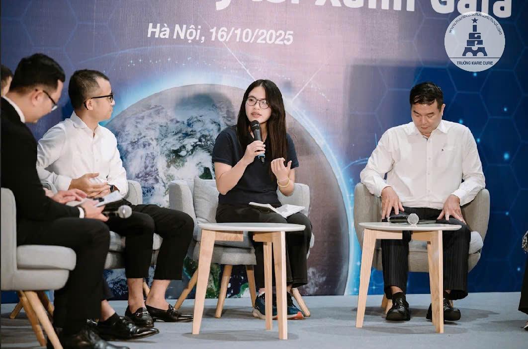 Vào ngày 16/10, Nguyễn Nguyệt Linh (12E0) vinh dự được đại diện thanh thiếu niên toàn quốc phát biểu tại diễn đàn “Tương lai xanh Gaia”. Đây là chương trình tập trung thảo luận về chính sách, nguồn lực và sáng kiến hành động xanh; hướng tới mục tiêu phát thải ròng bằng “0” (Net Zero) vào năm 2050. Trong đó, thế hệ trẻ được xác định là trung tâm của sự thay đổi.