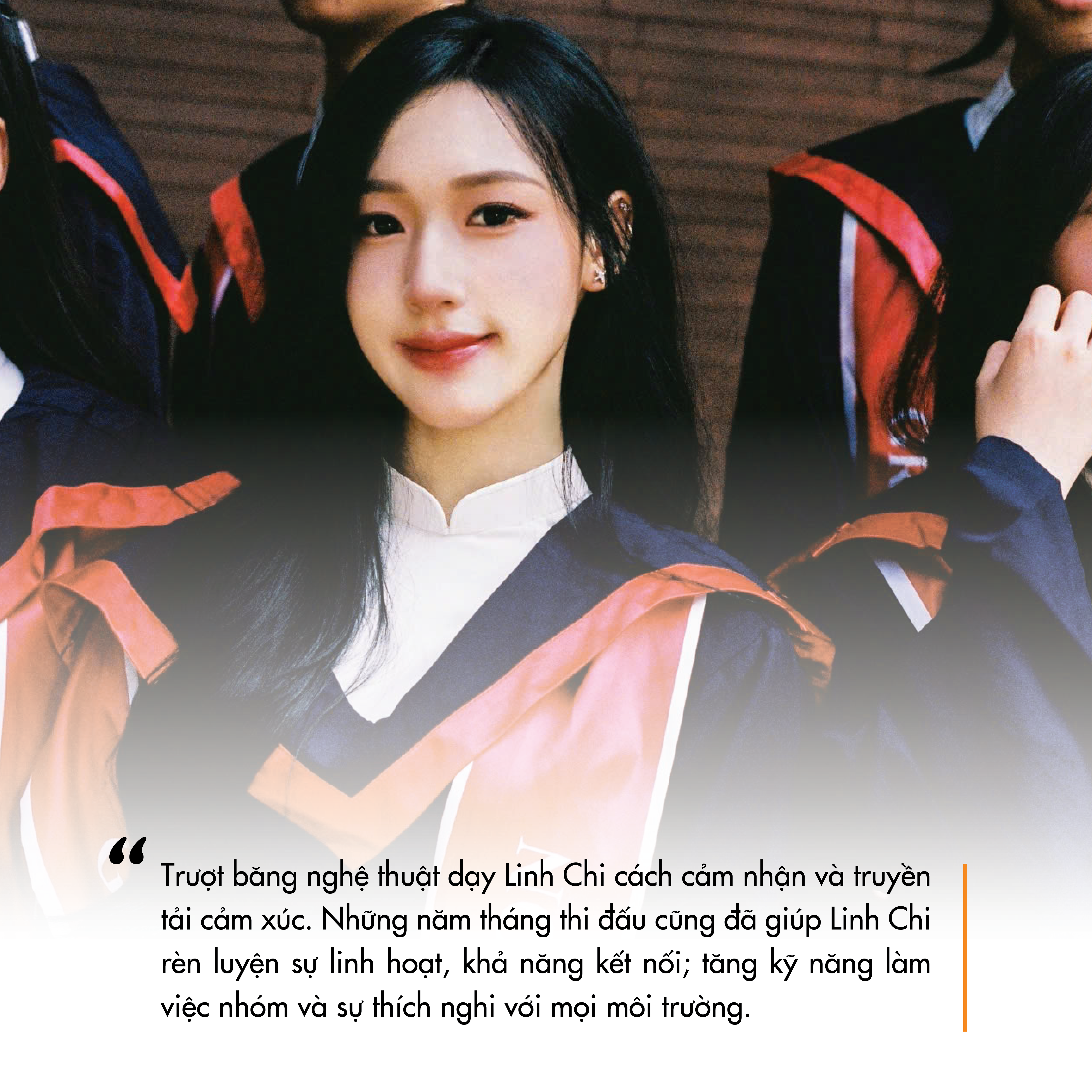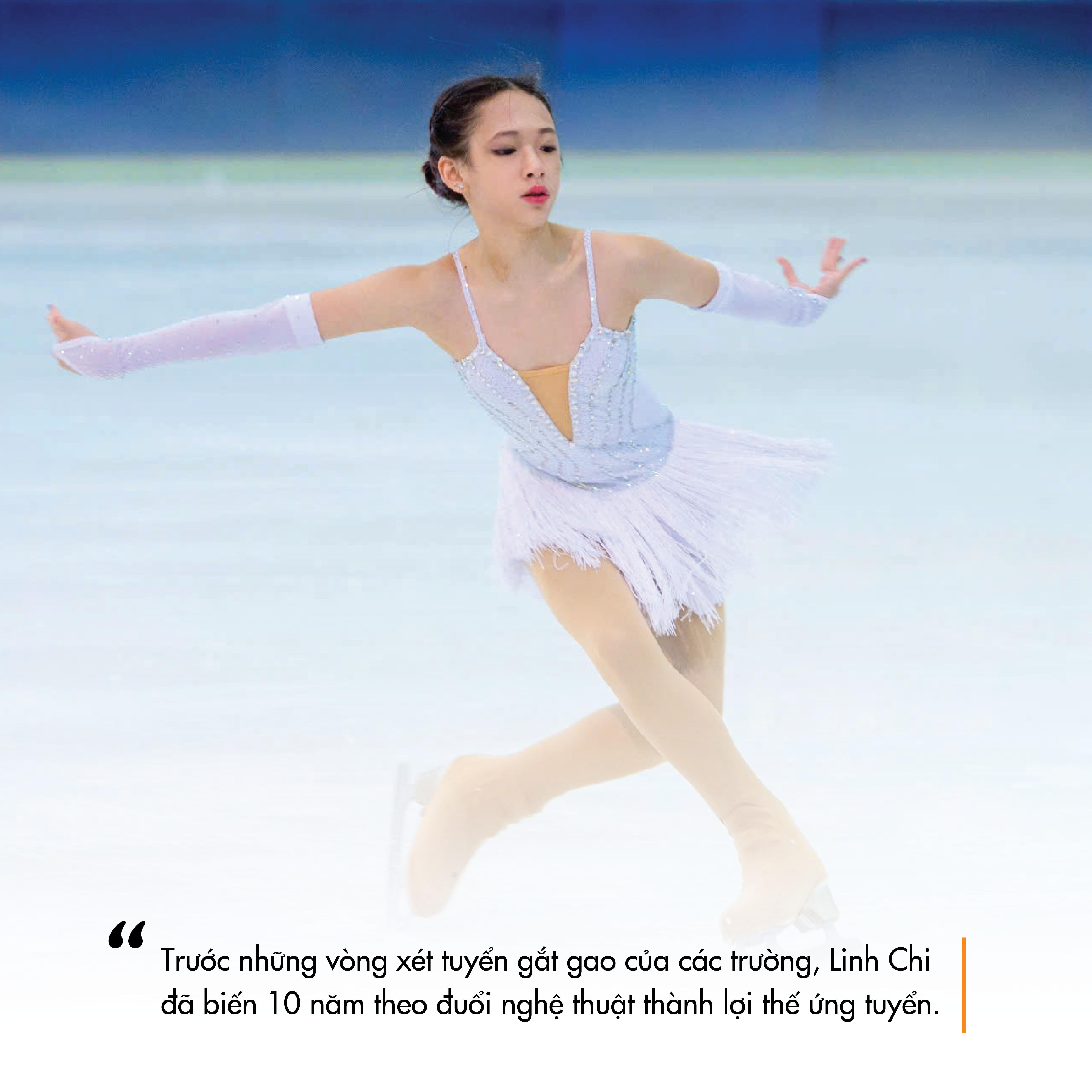 Trước những vòng xét tuyển gắt gao của các trường, Linh Chi đã biến 10 năm theo đuổi nghệ thuật thành lợi thế ứng tuyển. Linh Chi không chỉ trượt băng như một sở thích mà còn là một vận động viên thực thụ với bảng thành tích đáng nể. 10 năm khổ luyện, cô bạn sở hữu bộ sưu tập huy chương đồ sộ: 9 HCV tại các giải trượt băng nghệ thuật Quốc gia; liên tục gặt hái HCV, HCB và giải thưởng ở nhiều cuộc thi trong nước và thế giới.