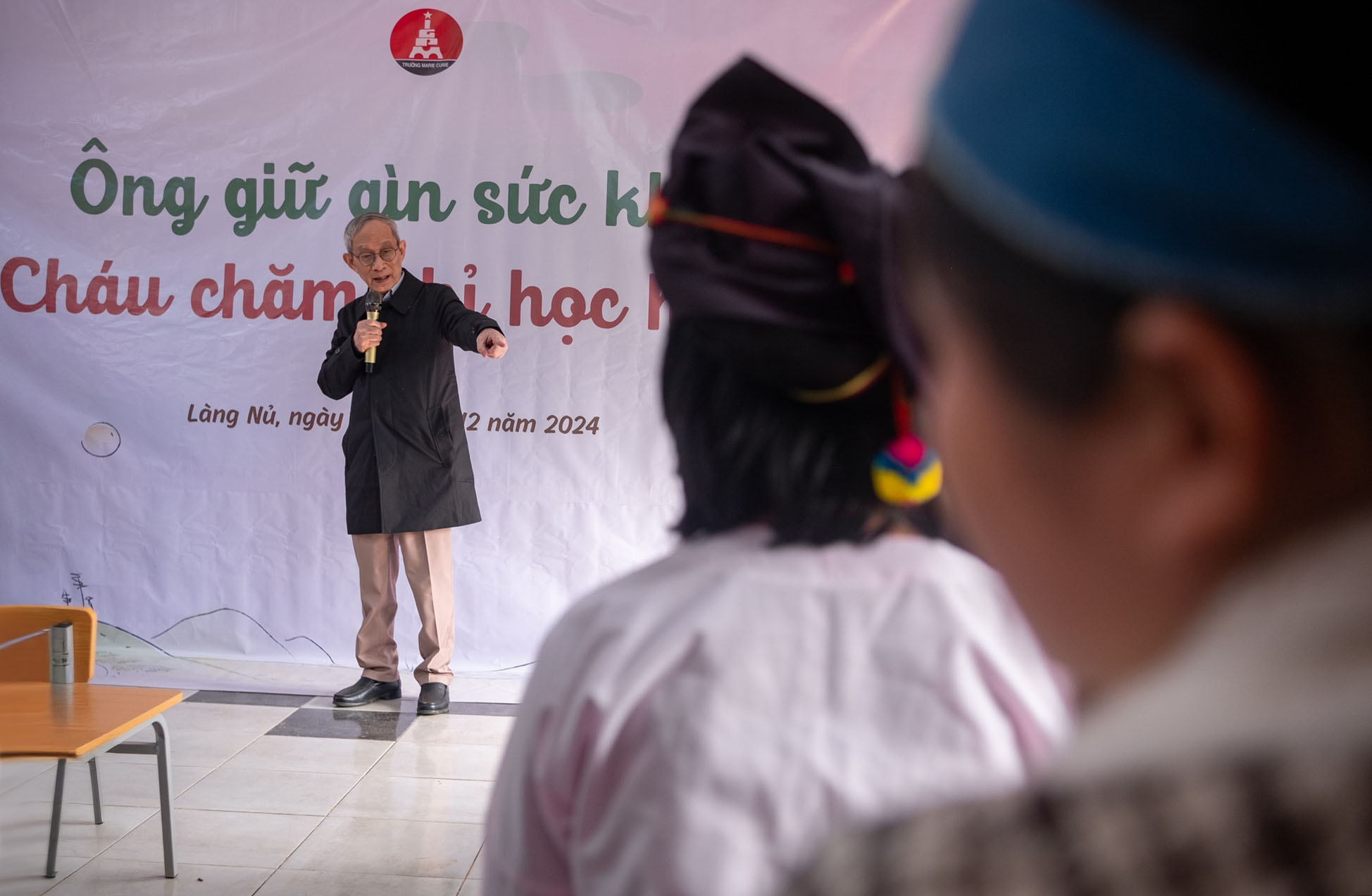 Cuối tháng 12/2024, thầy Khang bất chấp tuổi cao và khoảng cách xa xôi đã đích thân lên Làng Nủ để gặp các cháu (Ảnh: WeChoice Awards)