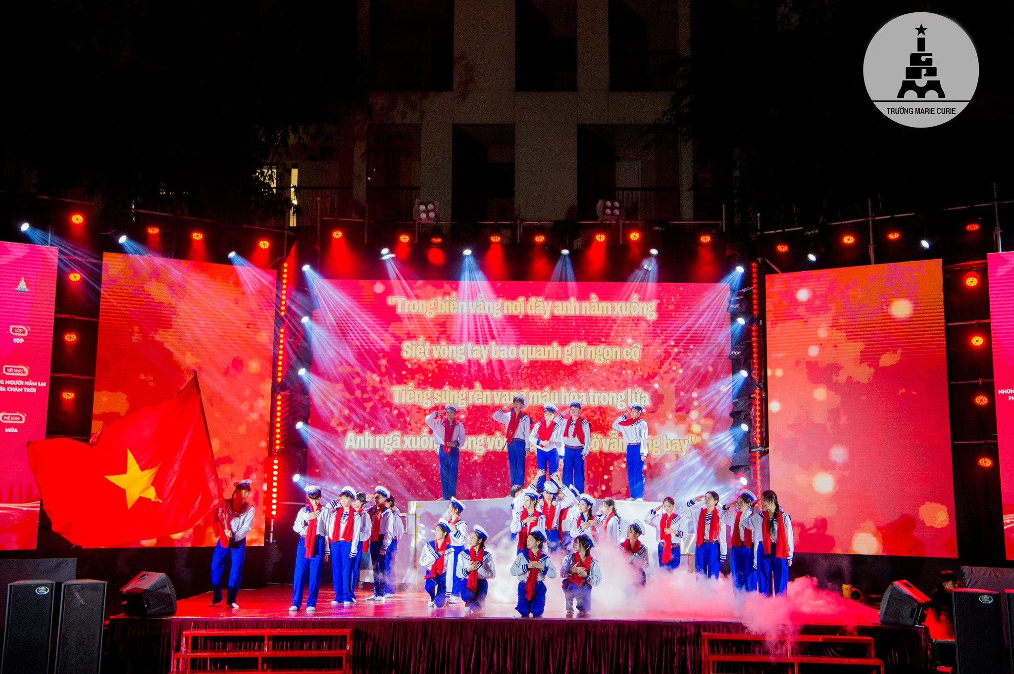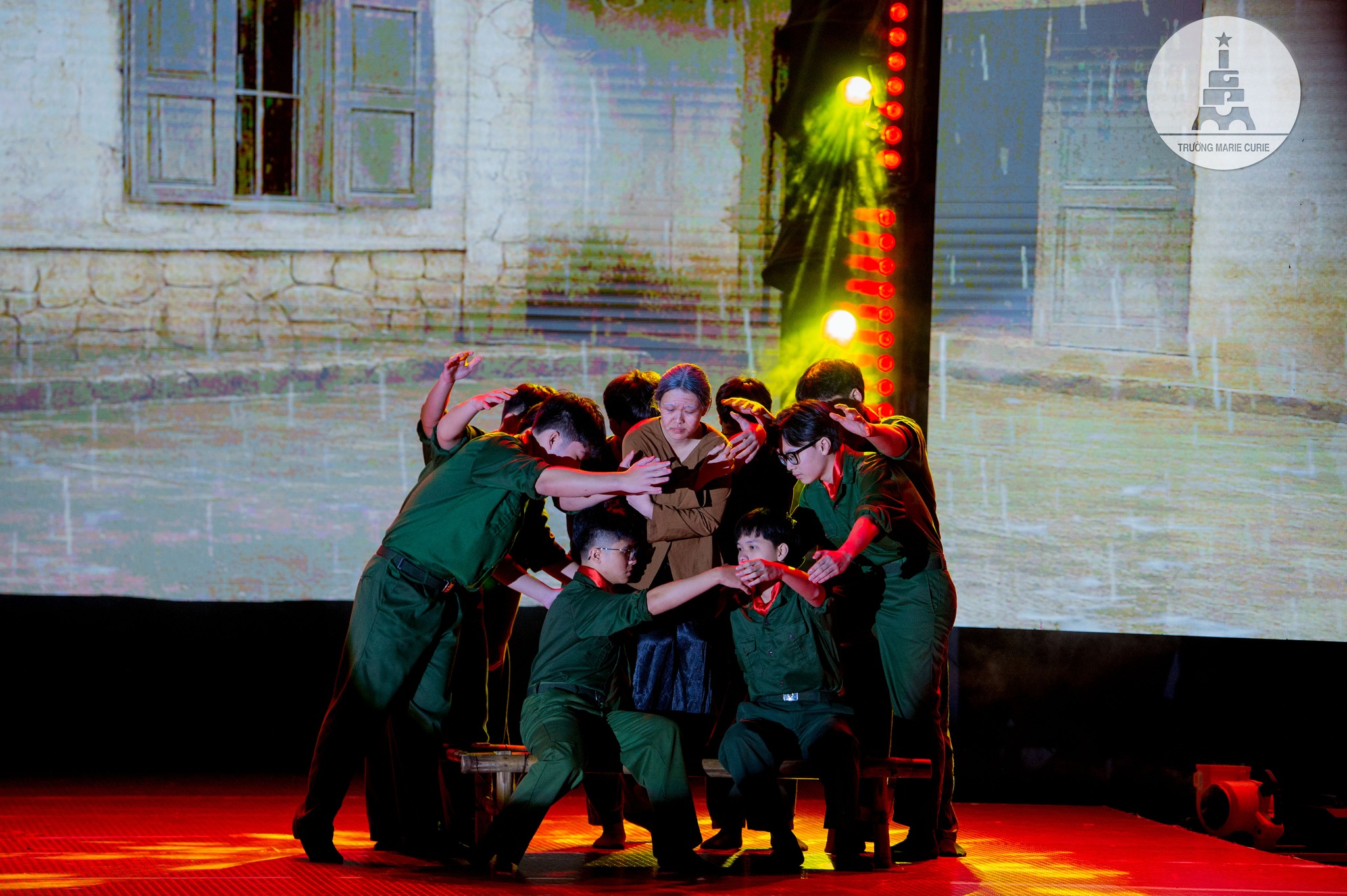 Đình An (11E3) vào vai bộ đội cụ Hồ; Ngọc Linh, Chi Mai, Trà My (10E4) trong tà áo dài trắng tinh khôi, “hoá thân” thành những nữ sinh tham gia kháng chiến. Kết thúc màn biểu diễn cùng lớp, các bạn cho biết: “Sau quãng thời gian tập luyện, chúng mình đã có đêm diễn tuyệt vời. Thông điệp ý nghĩa của hội diễn cùng những năm tháng học tập ở MC càng hun đúc trong chúng mình khát vọng được sống cuộc đời ý nghĩa cho bản thân và Tổ quốc”.