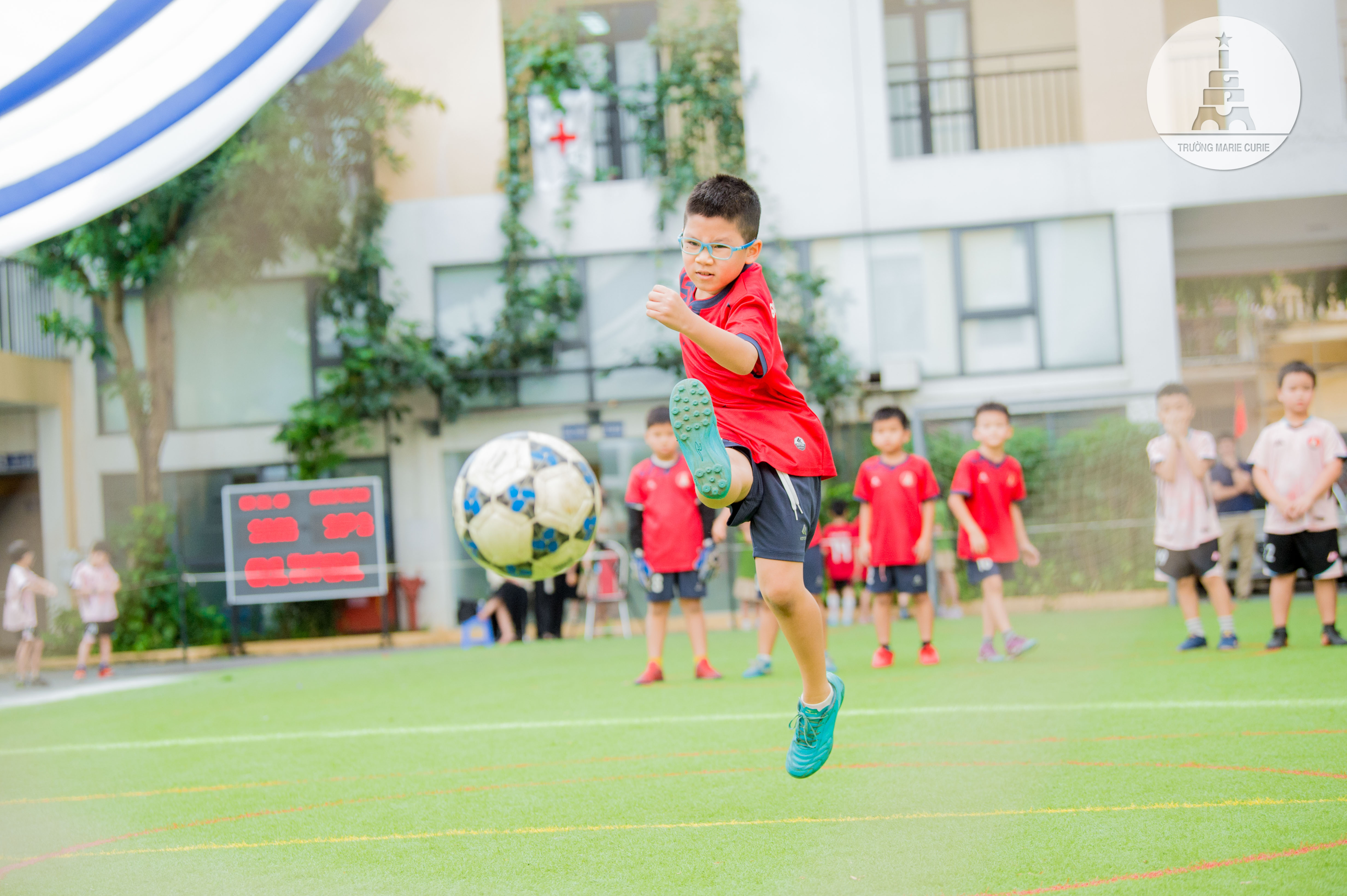 ⚽Ở nội dung bóng đá nam, ngay từ những phút đầu, 1M3 và 1M4 đã khiến khán giả đứng ngồi không yên. Là những em út của trường nhưng các cầu thủ thi đấu tập trung, phối hợp ăn ý và không ngại va chạm. Thủ môn 2 bên liên tiếp cản phá những cú sút “hiểm hóc”, giữ sạch khung thành, làm trận đấu càng thêm hấp dẫn và phải bước vào loạt luân lưu “cân não”.