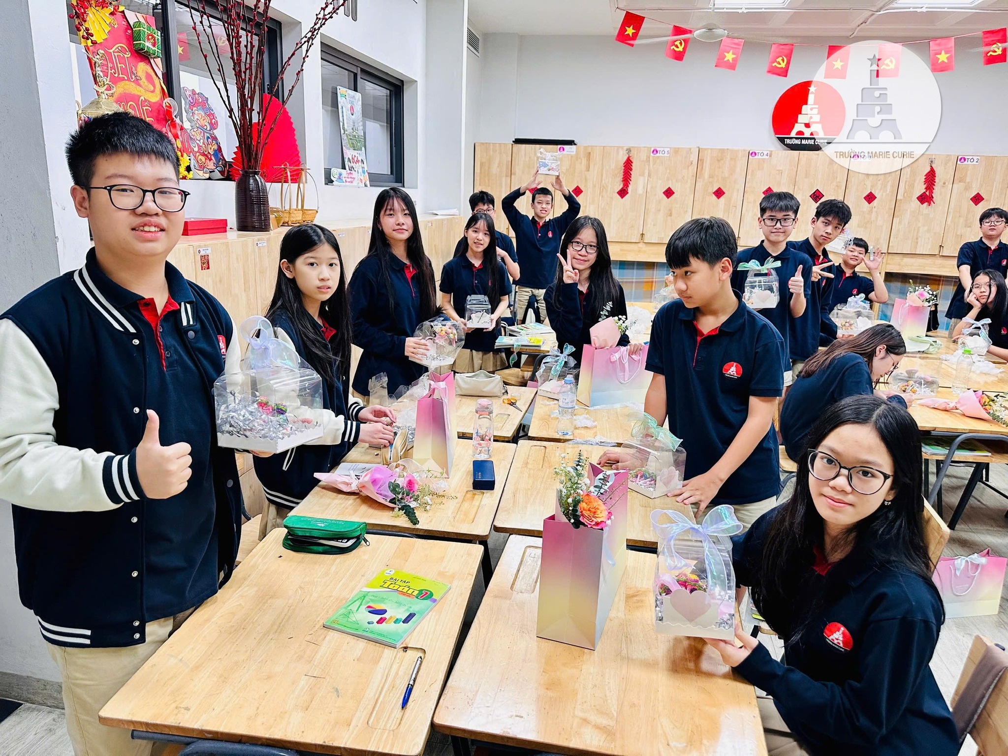 Để các học trò có thêm kỷ niệm đẹp với những người phụ nữ thân yêu, cô Hồng Minh (GVCN 6I3) đã tổ chức hoạt động viết thư; làm lọ ngôi sao, thiệp hoa khô. Bạn cũng nào thích thú, say sưa thực hiện để tạo nên món quà hoàn hảo nhất. Trong khi đó, các MCer 1P2 hào hứng cắm hoa để tri ân các cô lao công, nhà bếp. Ai cũng vui khi được nói lời biết ơn tới đội ngũ mang tới cho mình không gian học tập sạch sẽ và những bữa ăn ngon.