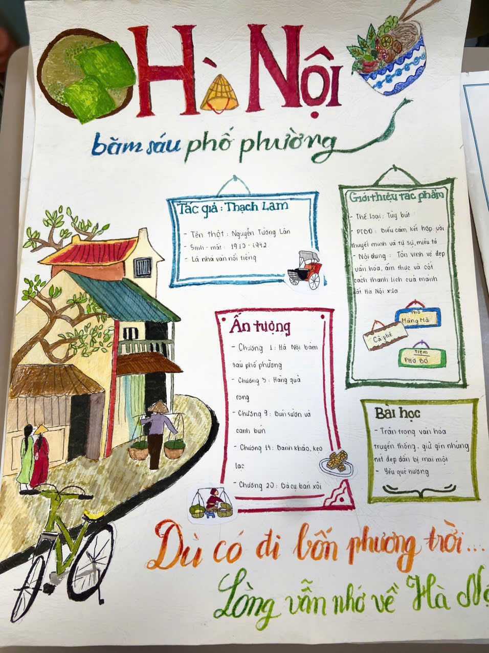 Không chỉ háo hức xuống thư viện, cùng nhau lựa chọn sách để tìm hiểu, sáng tạo tác phẩm theo ý tưởng cá nhân; các MCer 7I8 còn thiết kế poster và thuyết trình trong tiết Ngữ văn.