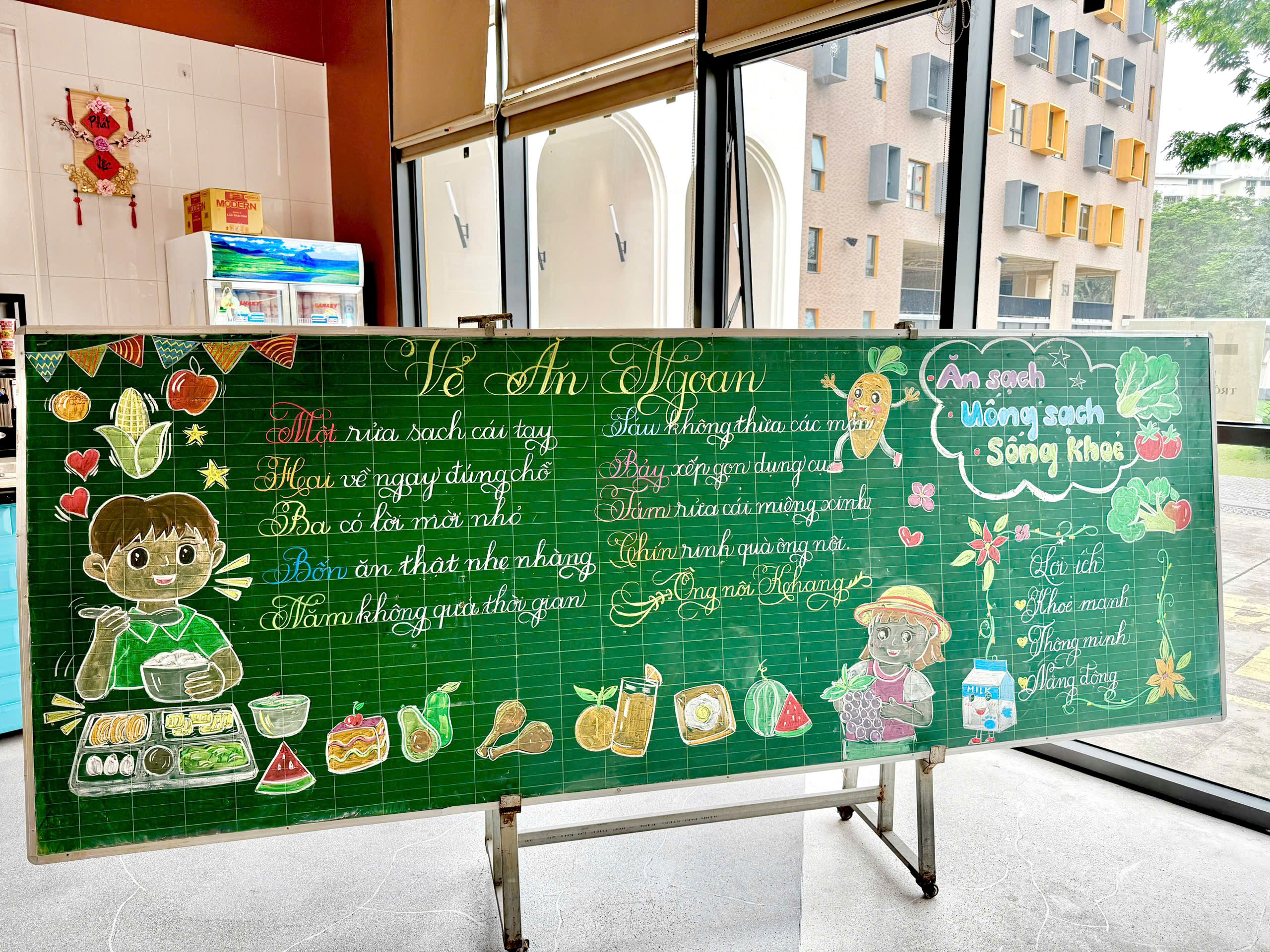 Bạn nào cũng thích chí và quyết tâm động viên nhau cố gắng vì tập thể. Để cổ vũ tinh thần của những “Heo con”, “Cún con”, các cô đã chuẩn bị những chiếc nơ xinh xắn và mũ đội đầu ngộ nghĩnh đeo trên đầu với “slogan” dễ thương như: “Ăn hết - Dọn sạch”, “Hạnh phúc khi được ăn ngon”, “Ăn ngoan, học tốt”, “Ăn khỏe, ăn ngoan”, “Rinh quà “ông nội””, “Ăn giỏi khỏi bàn”… Các cô còn trổ tài trang trí bảng với nội dung “Bài vè” để các “chiến binh” ghi nhớ và lấy động lực thi tài. Trước giờ thi, các học trò đã đồng thanh đọc bài vè “Ăn ngoan” và mời thầy cô, bạn bè cùng ăn trưa.