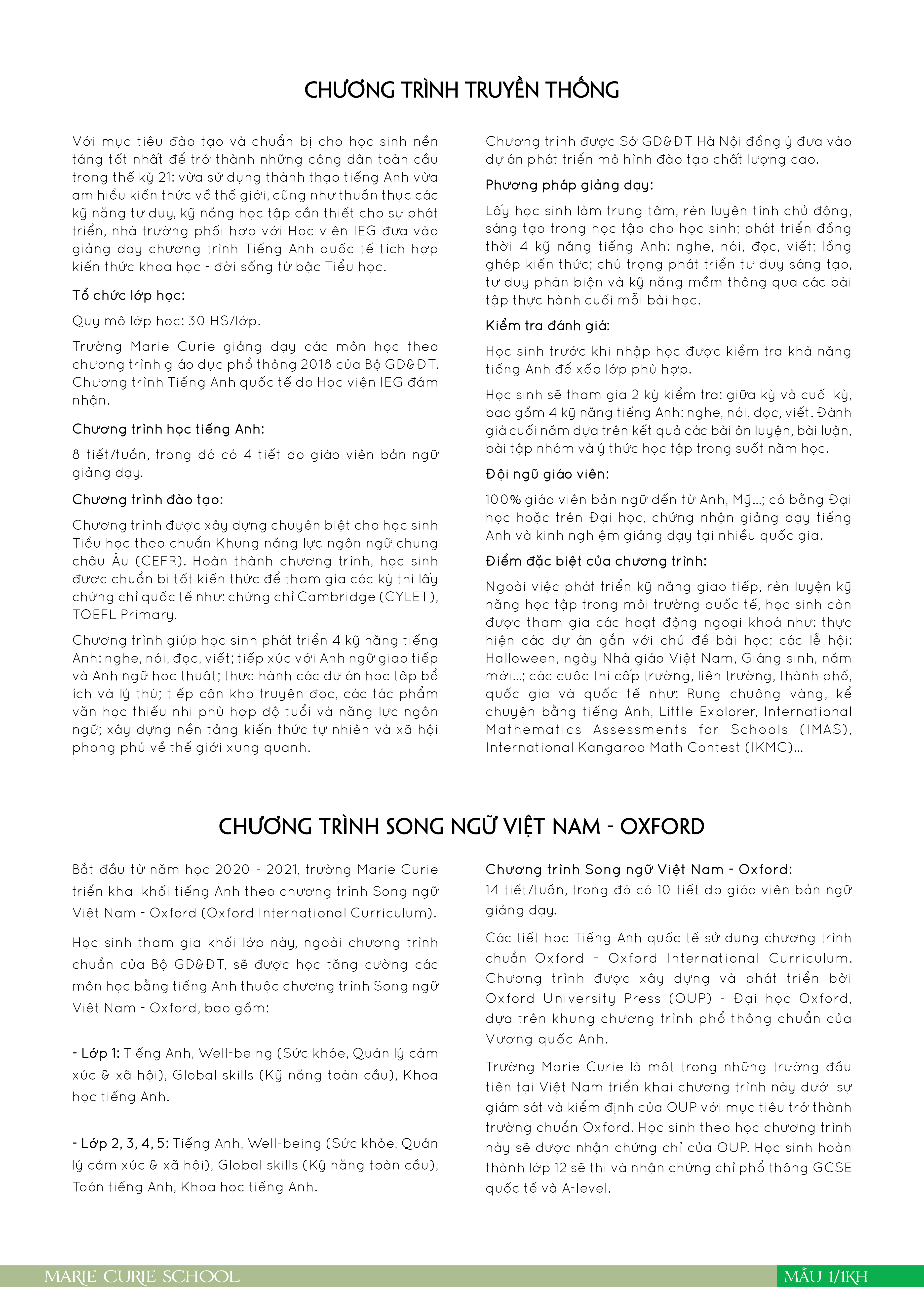 2. Chương trình học tiếng Anh quốc tế tại trường Marie Curie: xem tại đây