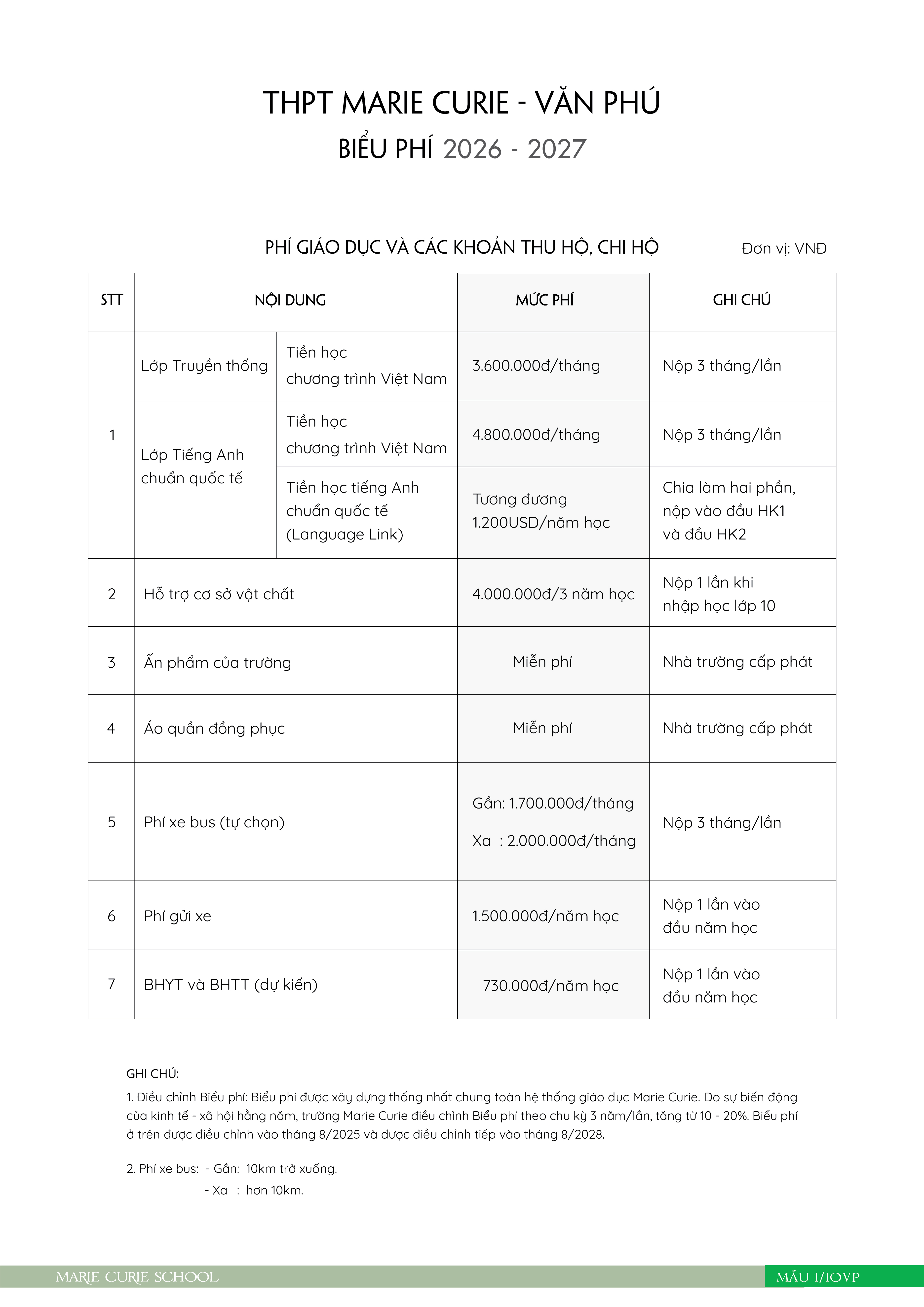 Thông báo số 2 về hướng dẫn tuyển sinh vào lớp Mẫu giáo, lớp 1 và lớp 6 năm học 2026 - 2027 của hệ thống giáo dục Marie Curie, Hà Nội.
