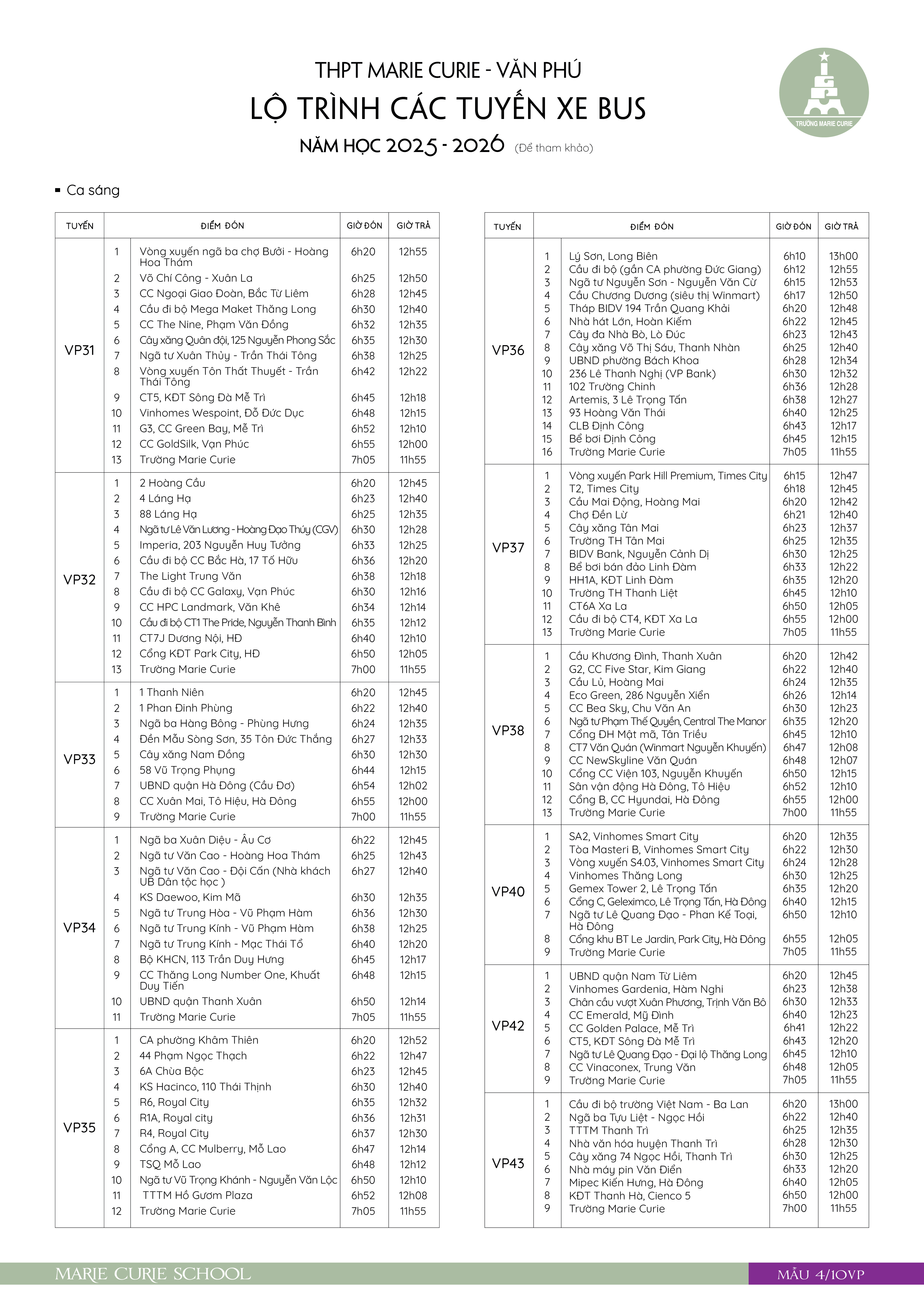 Thông báo số 3 về tuyển sinh vào lớp 10, năm học 2026 - 2027 của hệ thống giáo dục Marie Curie, Hà Nội tại cơ sở Mỹ Đình, Văn Phú và Việt Hưng.