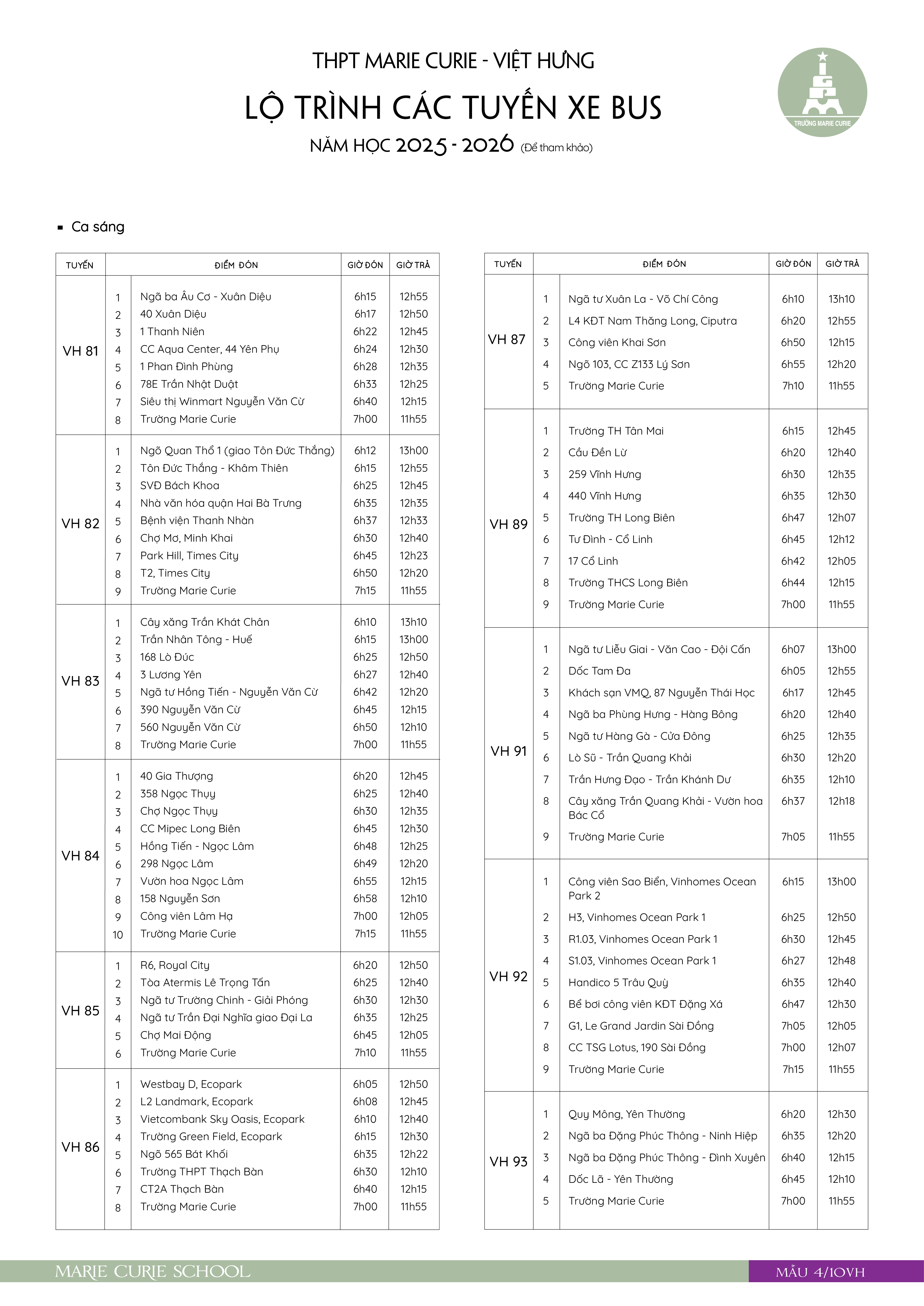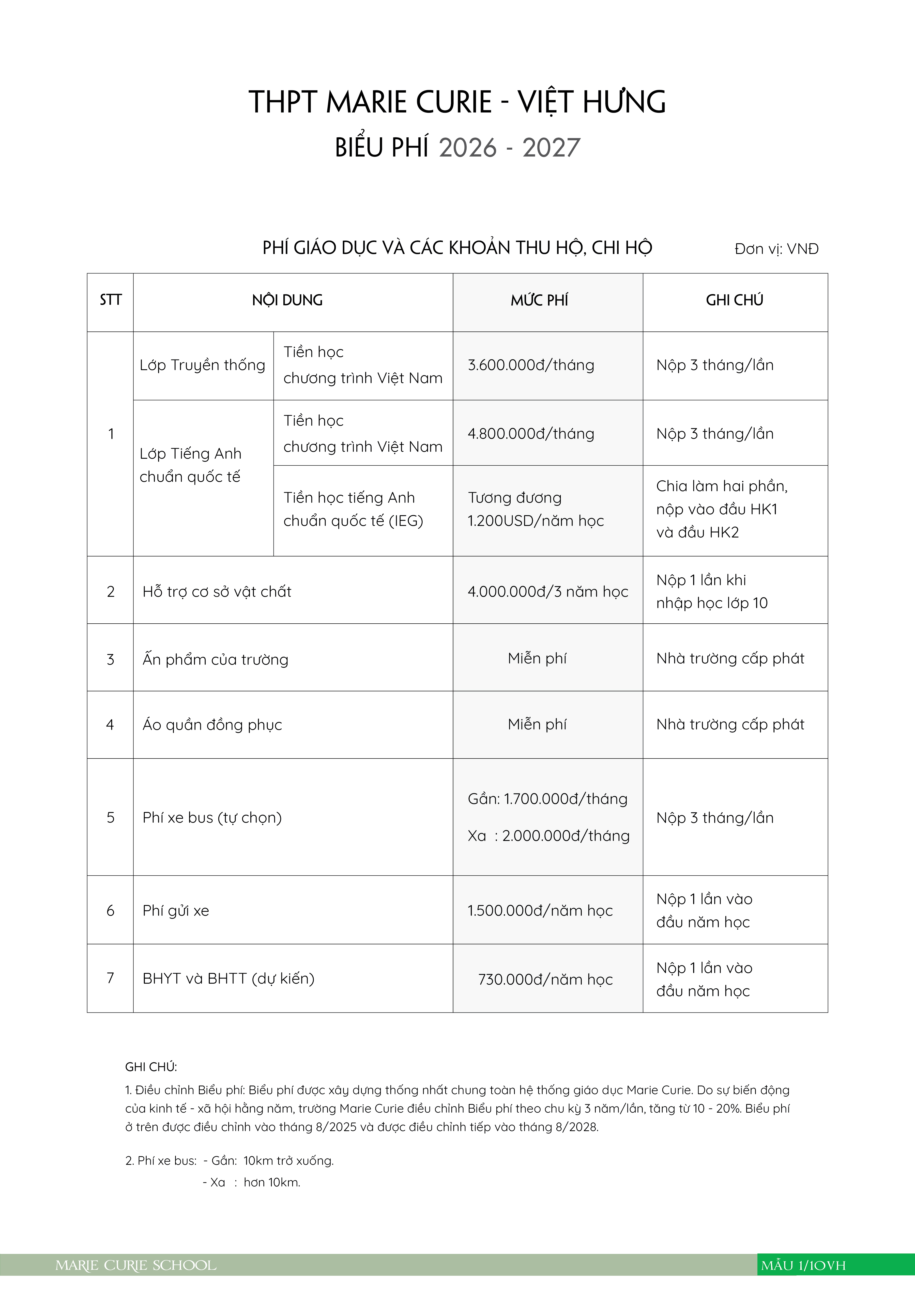 Thông báo số 3 về tuyển sinh vào lớp 10, năm học 2026 - 2027 của hệ thống giáo dục Marie Curie, Hà Nội tại cơ sở Mỹ Đình, Văn Phú và Việt Hưng.