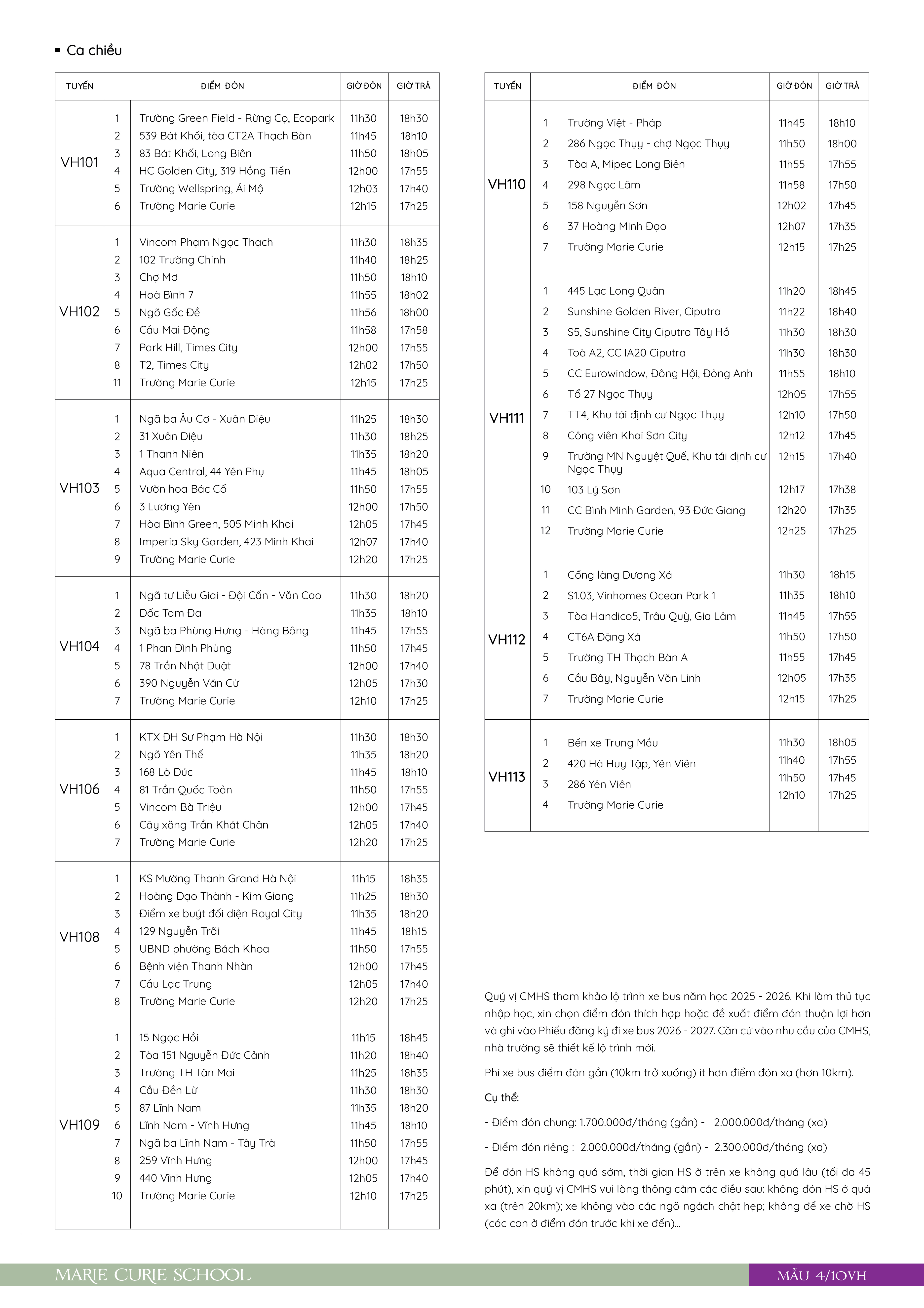 Thông báo số 2 về hướng dẫn tuyển sinh vào lớp Mẫu giáo, lớp 1 và lớp 6 năm học 2026 - 2027 của hệ thống giáo dục Marie Curie, Hà Nội.
