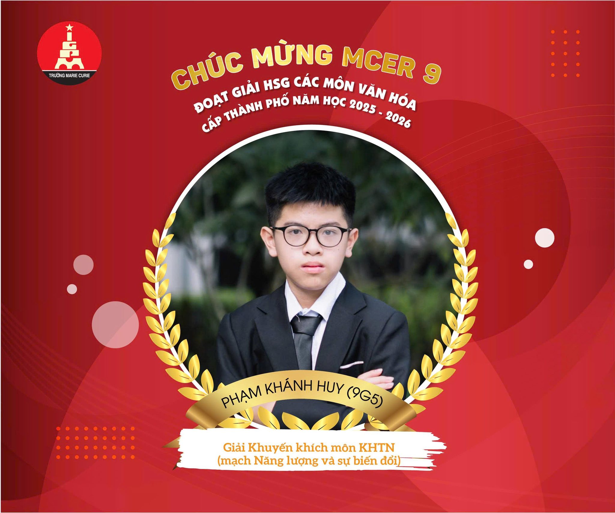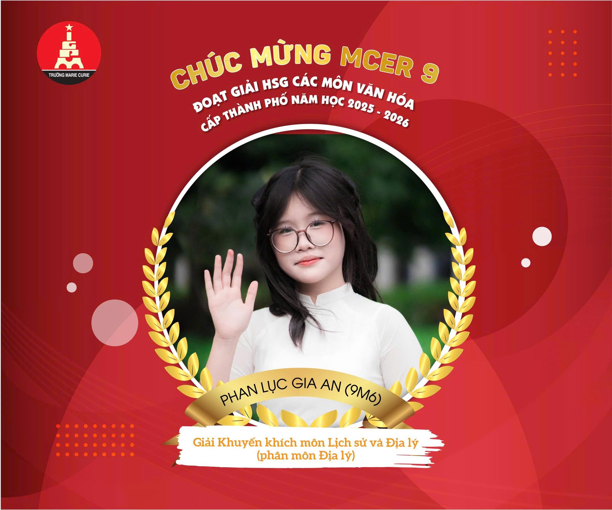 Tại kỳ thi HSG các môn văn hóa cấp Thành phố năm học 2025 - 2026, các MCer 9 - Văn Phú đã xuất sắc đạt những thành tích ấn tượng: 01 giải Ba và 03 giải Khuyến khích.