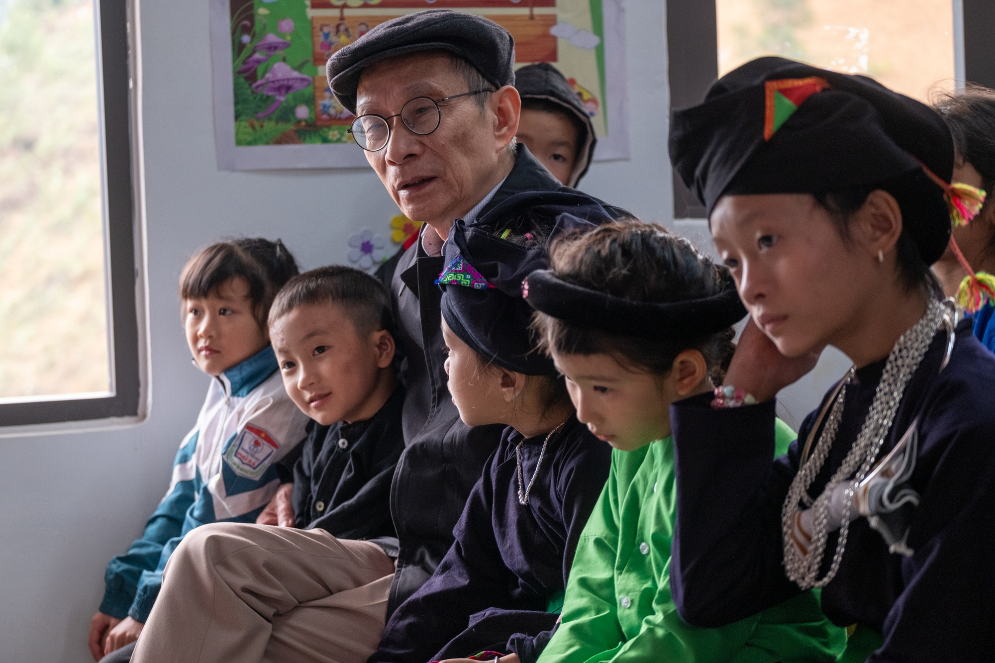 Cuối tháng 12/2024, thầy Khang bất chấp tuổi cao và khoảng cách xa xôi đã đích thân lên Làng Nủ để gặp các cháu (Ảnh: WeChoice Awards)